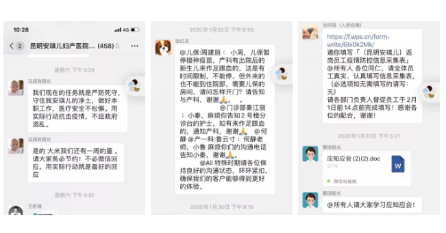 灵活运用现代网络技术,发挥微信群的远程作用,掌握全院员工具体动向,向全院员工多次告知并实时更新国家防控要求,要求全院员工做到全员知悉并执行,且责任到人。