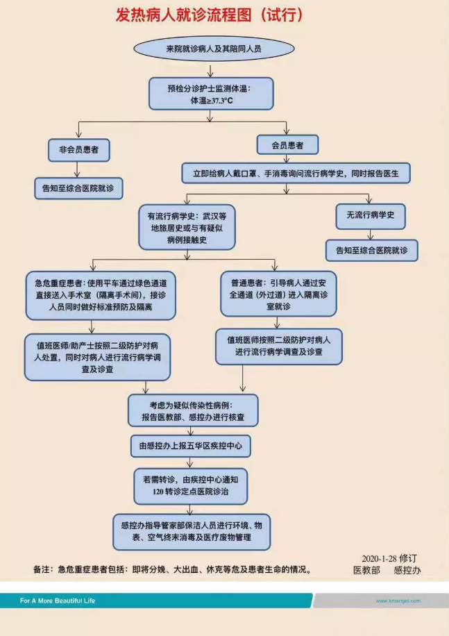 按照昆明卫健委的指示,明晰转诊流程及方式并知悉全院员工及广大客户,在第一时间线上告知昆明市所有发热门诊及联系方式,尽可能减少有发热等症状患者正确就诊;制作院内就诊流程视频,宣传页,广而告之。