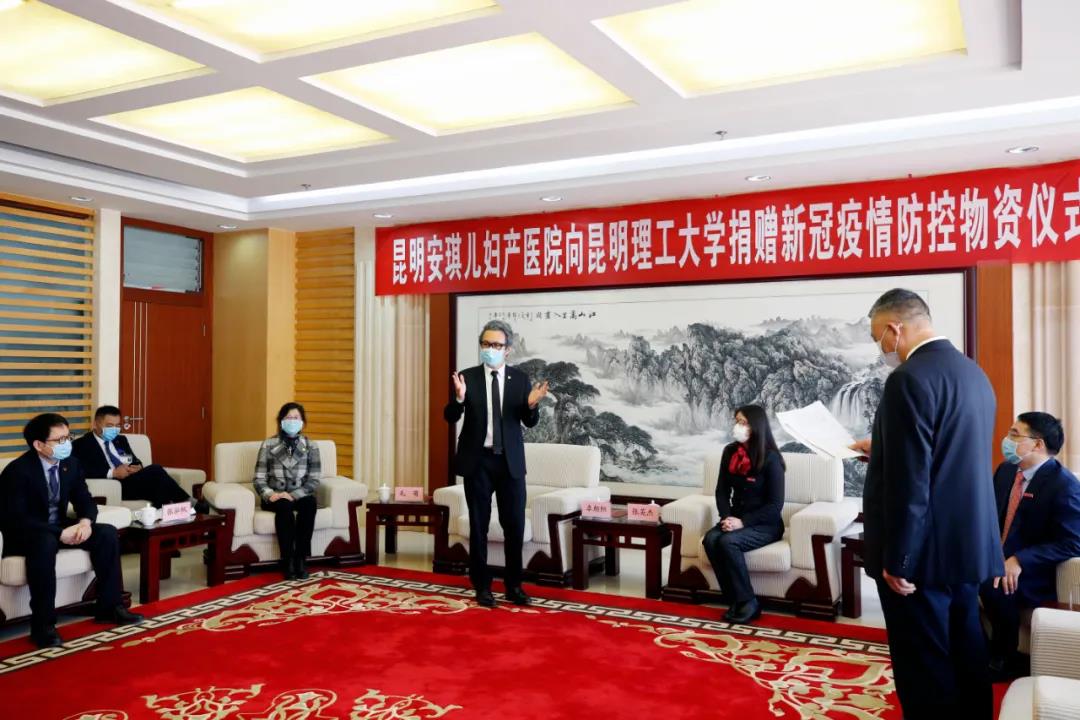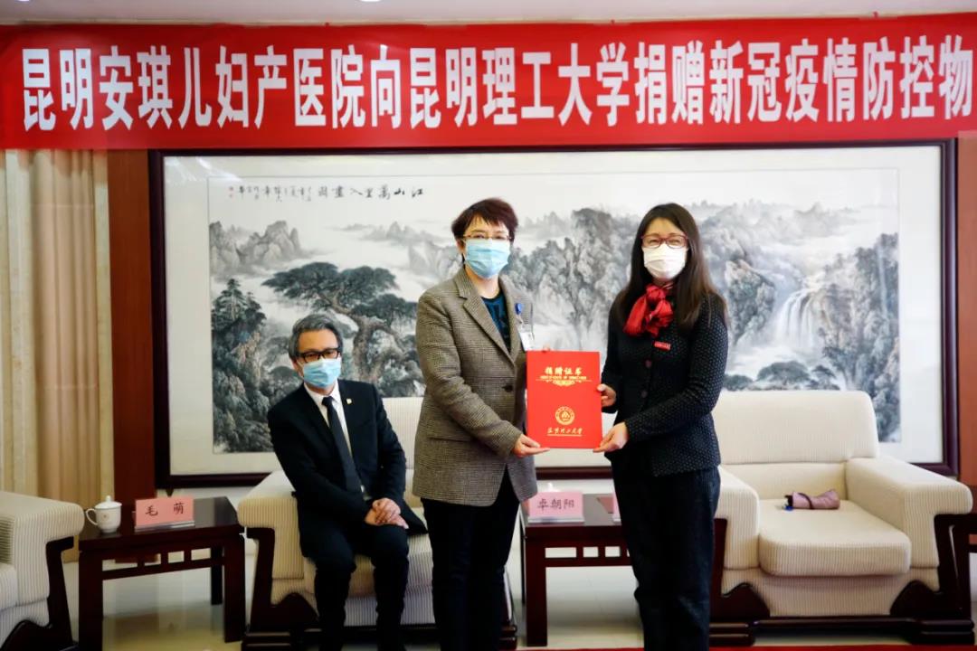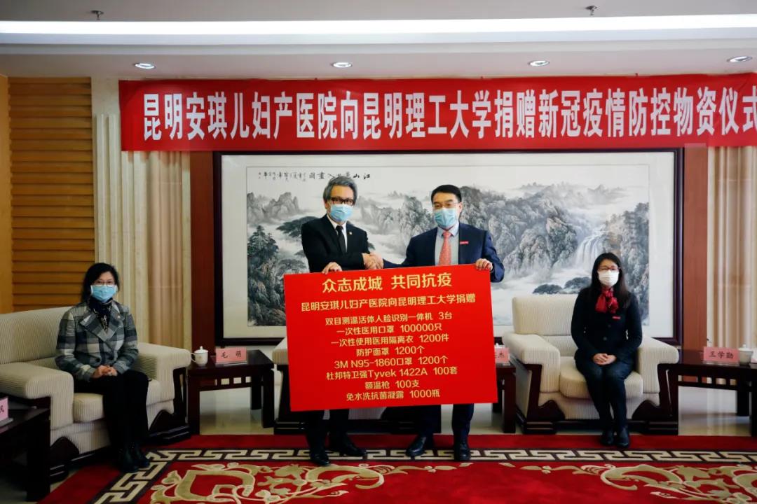 谈及捐赠物资的初衷,安琪儿医疗控股集团董事、首席运营官、安琪儿妇产医院总院长毛萌教授说,当前全国疫情形势出现积极变化,昆明理工大学复学在即,安琪儿希望为昆工的疫情防控工作贡献一点绵薄之力,通过这批防疫物资助力昆工6万余名师生安全返校。