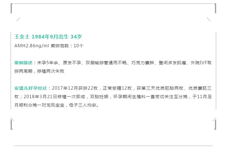 在到安琪儿生殖医学科之前,王女士已经经历过两次试管婴儿助孕失败了,第一次获卵13枚,成胚1枚,