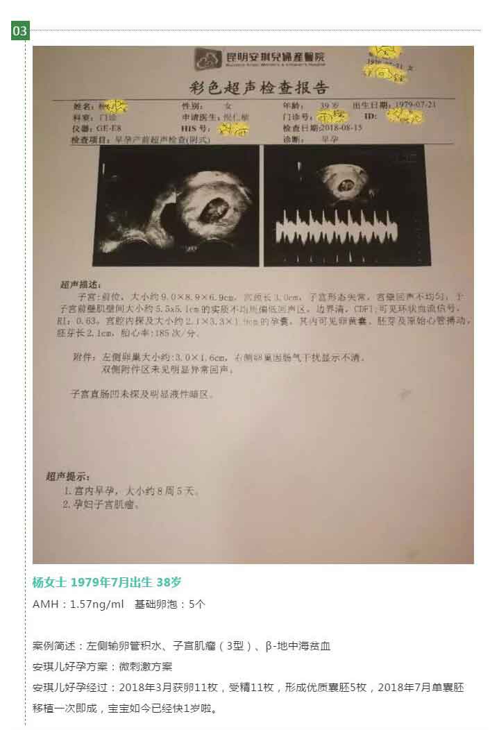 比如摄入辅酶Q10、白藜芦醇、维生素E、T-1口服液等,并且改变了促排卵方案。非常幸运的是,这次在安琪儿助孕获得了优质的胚胎。