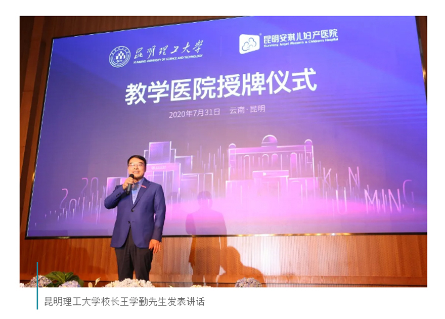 昆明理工大学校长王学勤在讲话中表示,安琪儿医疗控股集团是行业领先的妇幼医疗集团,昆明安琪儿妇产医院在医院建设工作上取得的成绩有目共睹。这一次依据有关指标要求,经多番多维实地严苛评审,将昆明安琪儿妇产医院增设为昆明理工大学教学医院,实现了双方从集团到医院的全面校院合作。通过临床与教学的紧密结合,对昆明理工大学医学院构建标准化、规范化的临床医学人才培养体系起到积极推动作用。未来双方将为云南培养更多优秀的医学人才,共同推进云南省医学教育质量和医疗卫生事业的双发展。