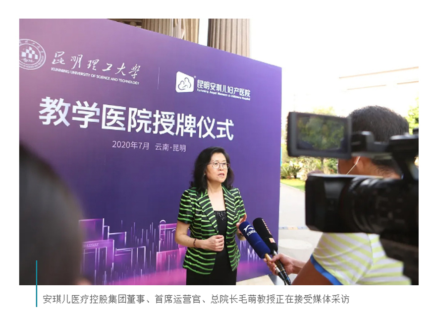 安琪儿医疗控股集团董事、首席运营官、总院长毛萌教授在接受媒体采访时表示,昆明安琪儿妇产医院成为昆明理工大学教学医院,是安琪儿医疗控股集团一贯重视医教研一体化战略蓝图的最新成果。这次校院合作,对于昆明安琪儿加强医院内涵建设,强化医院教学职能,创新实践教学模式,完善质量监控体系有着里程碑的意义。下一步双方将以教学医院的合作为契机,携手并进,重点培养高素质应用型医学人才,切实提升云南医疗卫生服务水平,为云南省妇幼健康事业发展做出贡献,共创美好未来。