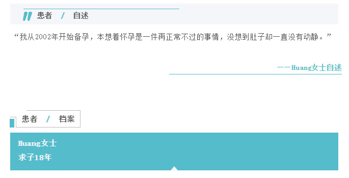 ● 既往助孕史:Huang女士婚后一直希望早日孕育一个健康的小宝宝,2002年怀着求子希望的她走进了