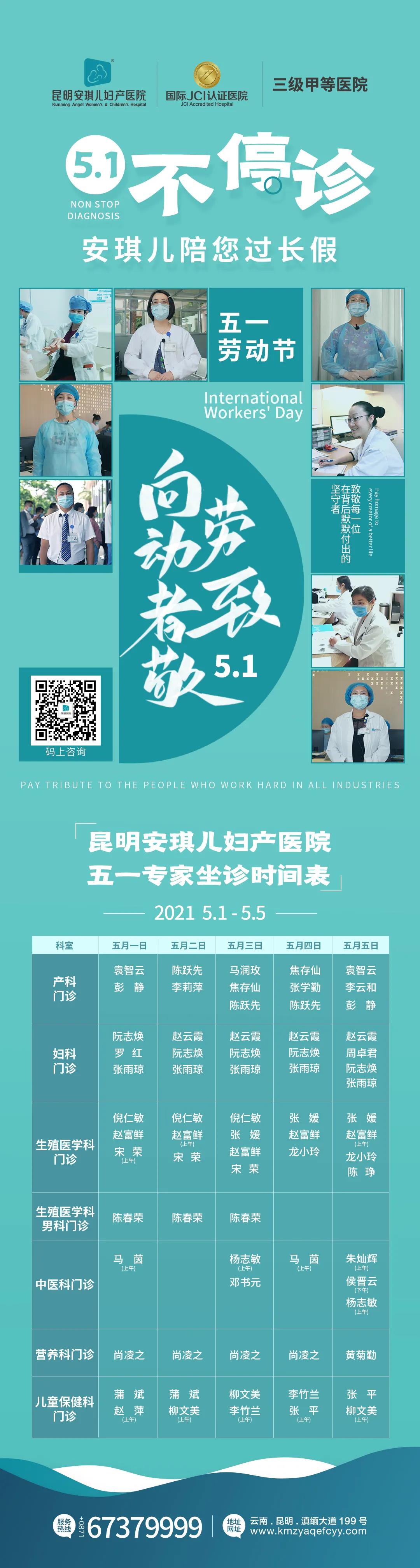 小编在此附上《五一专家坐诊时间表》,您可根据需要选择到院日期,如有临时调整,请以当日预约挂号信息为准,如有疑问请咨询24h客服热线:0871-67379999。