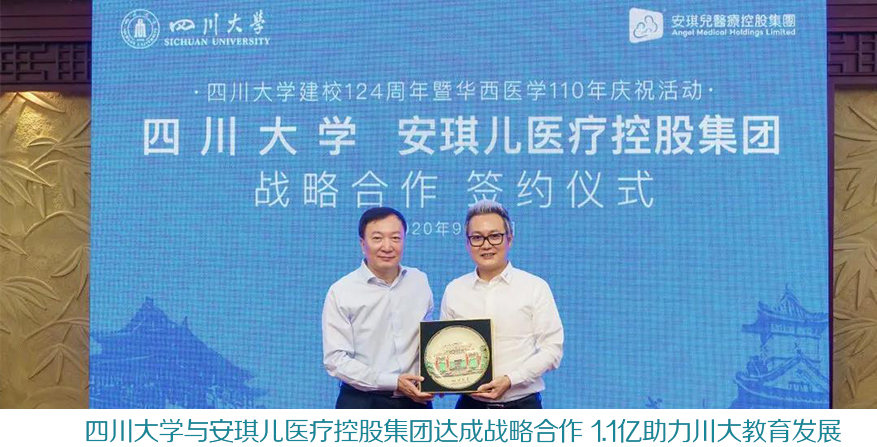 四川大学与安琪儿医疗控股集团达成战略合作 1.1亿助力川大教育发展 2020年9月16日,四川大学、安琪儿医疗控股集团正式达成战略合作,并于川大望江校区举行签约仪式,宣布设立1.1亿...[详情]
