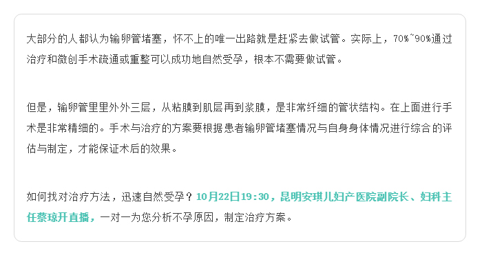 10月22日直播 | 听蔡琼主任讲述输卵管堵塞后如何迅速自然受孕