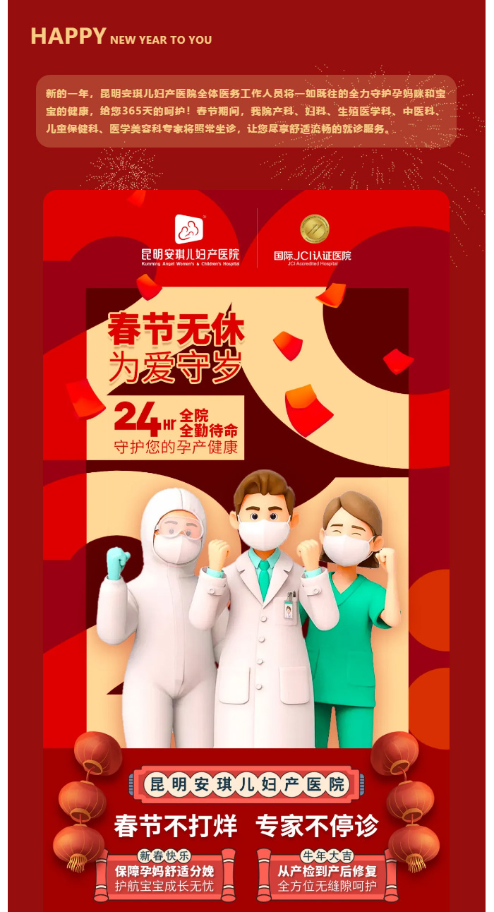 春节无休 为爱守岁 | 昆明安琪儿妇产医院春节不停诊,为您的健康保驾护航