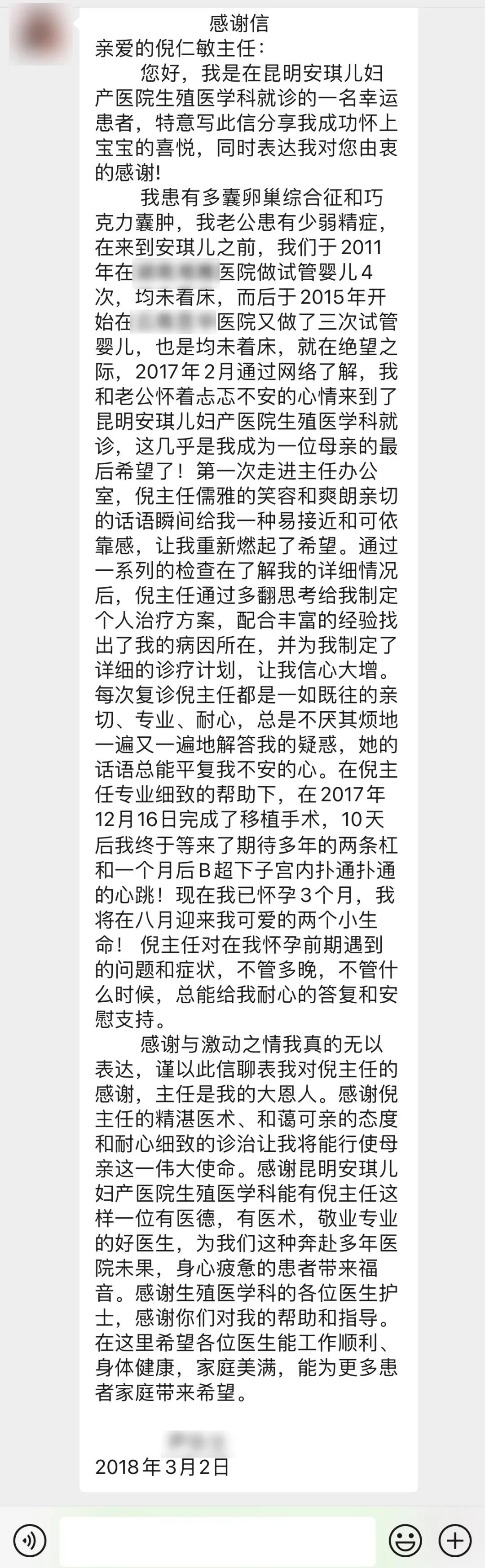 今年1月Y女士来续胚胎冷冻费,特意来看望了倪主任,再次见到倪主任,Y女士夫妇依旧激动不已。