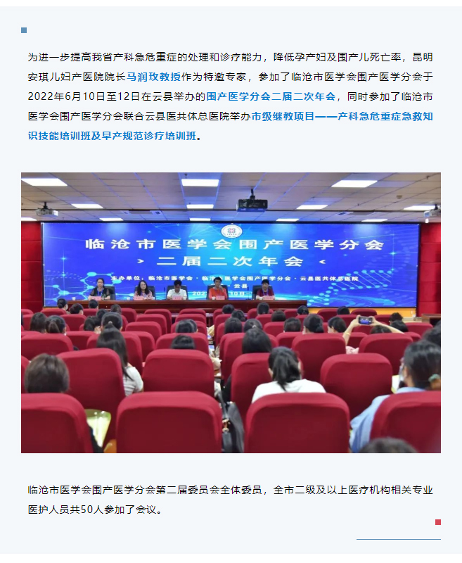 经验,为临沧市产科医务工作人员全方位展示了产科急危重症防治的临床处理要点。