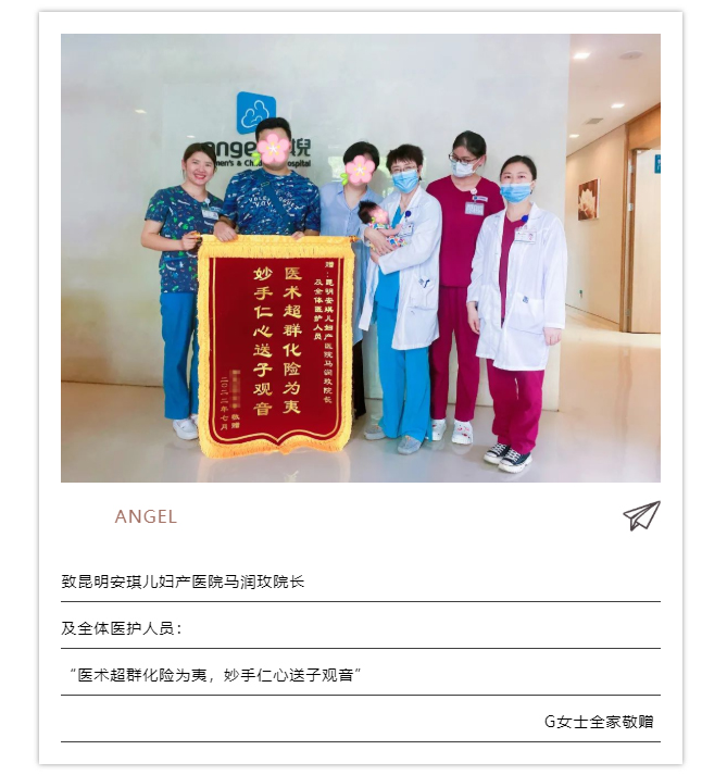 安琪儿妇产医院产科,G女士对我院院长马润玫教授及全体医护团队表达由衷的感谢。