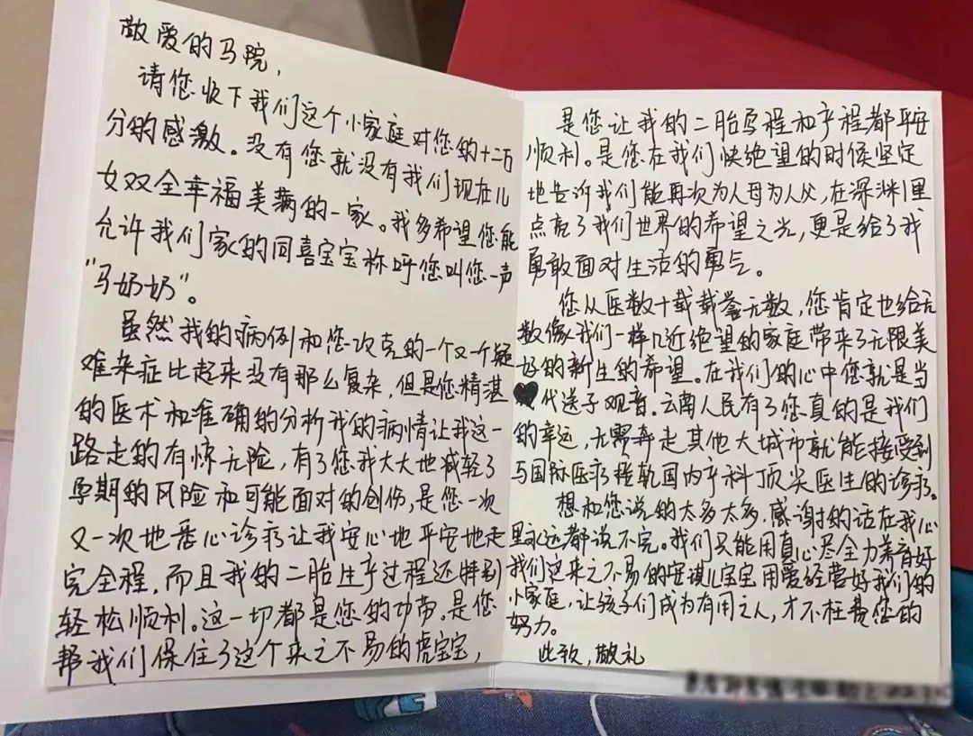 一个平常日子的下午,一对夫妇捧着写有“医术超群化险为夷,妙手仁心送子观音”字样的锦旗走进了昆明