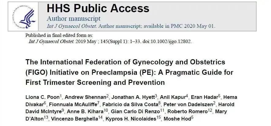 我院根据国际妇产科联盟(FIGO)2019年3月发布了关于早孕期子痫前期筛查和预防的指南,推荐联合