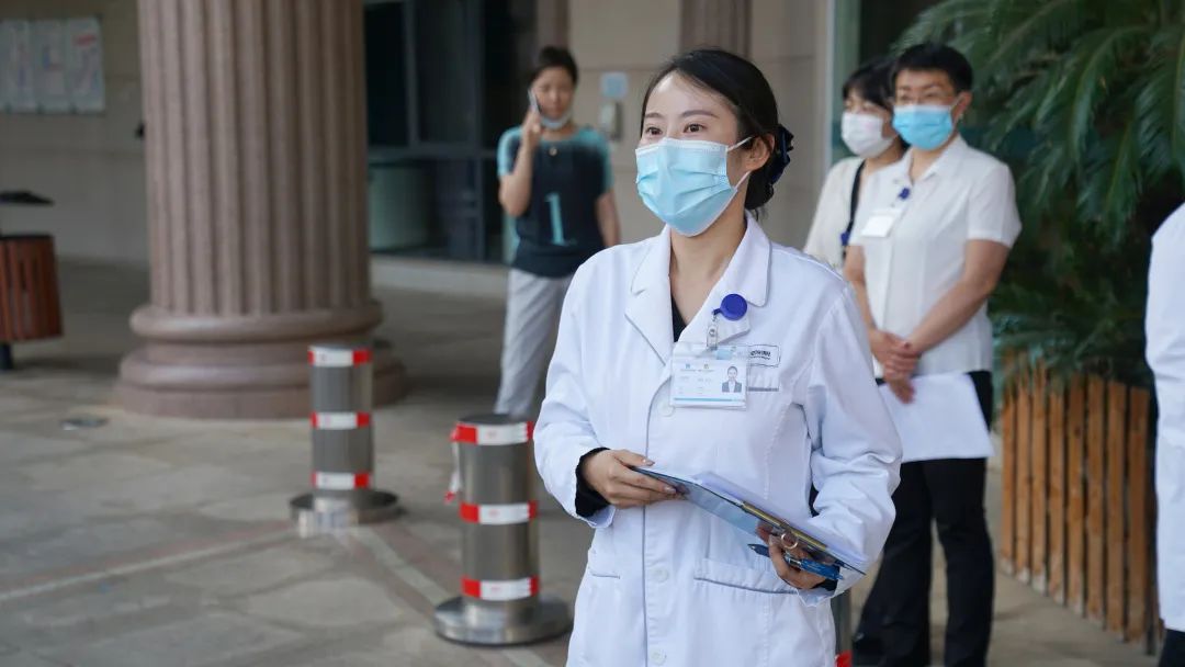 预检分诊护士到达现场进行体温复测,并详细询问患者信息,初步判断疑似新冠病毒感染。