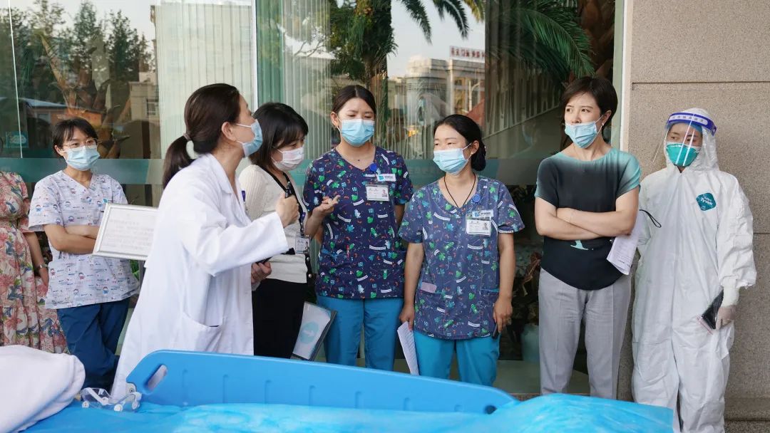 针对疑似病例“紧急临产”“宫外孕”两种情景,实操演练从隔离通道至隔离诊室,医生评估情况后再通