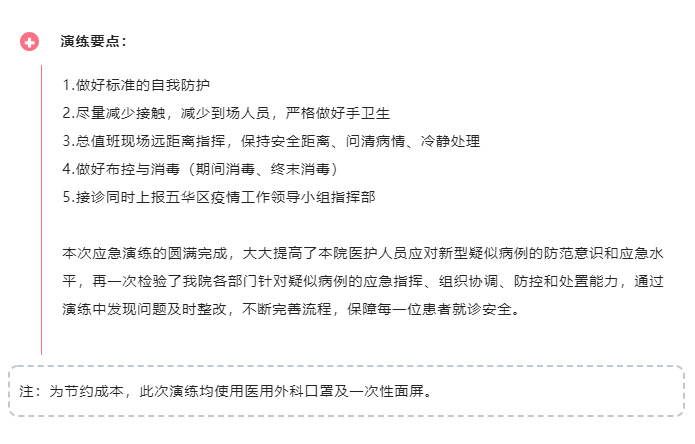 高疫情突发的处置能力,筑牢防控安全屏障,我院定期组织开展针对疑似新型冠状病毒感染情况的预防与