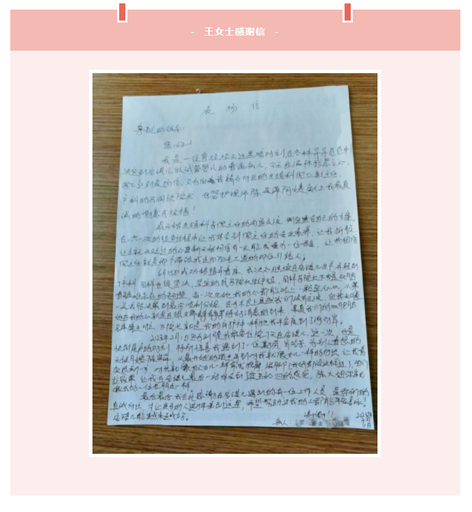 赵主任以高超的医术、认真负责的态度以及丰富的经验获得了浦女士及家属的高度认可。