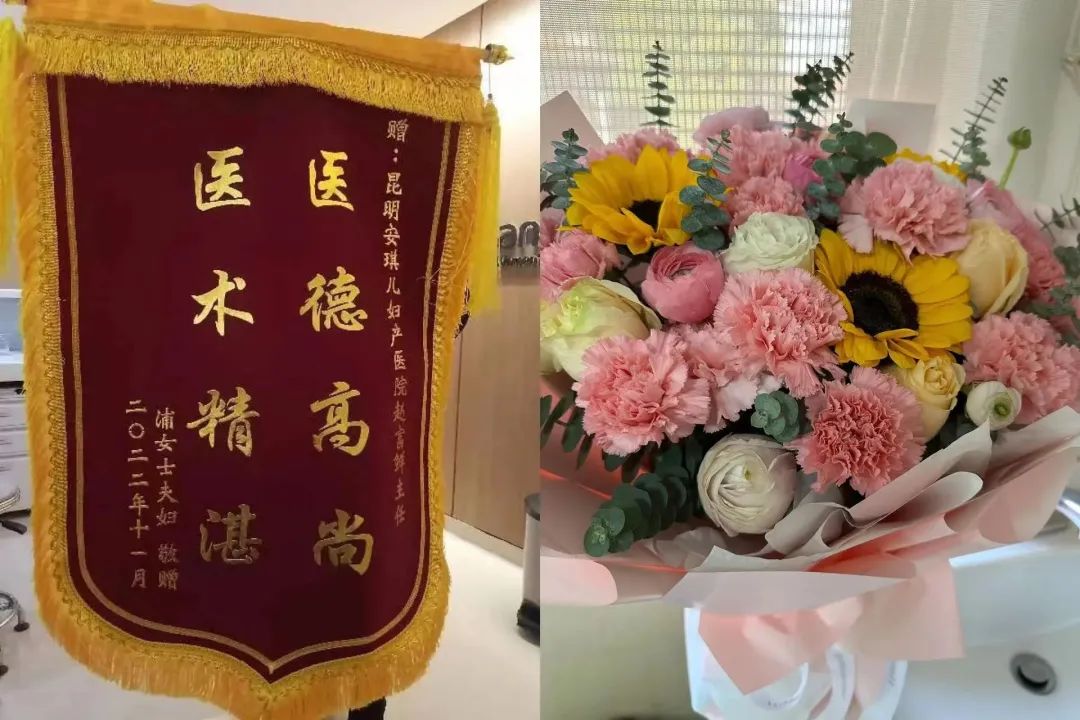 三胎,为感谢赵主任特送来锦旗,感谢内容如下:"医德高尚,医术精湛。"