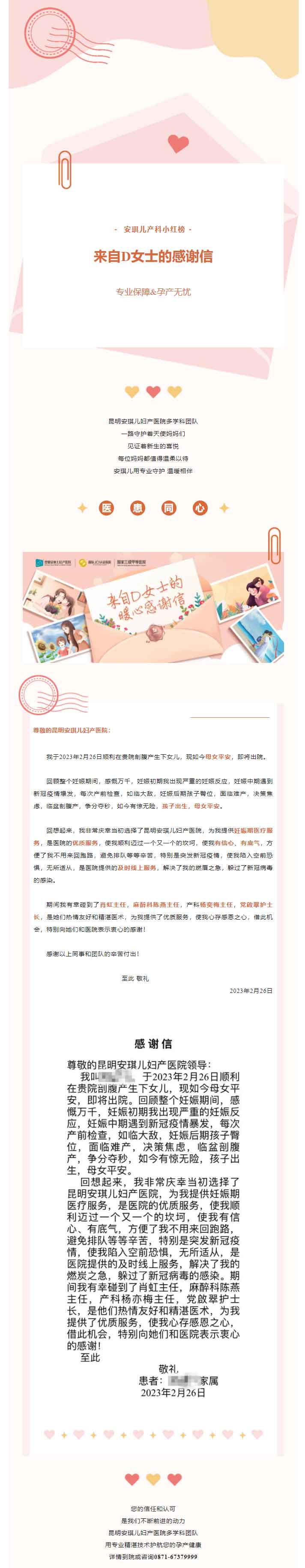 宝妈暖心感谢信|安琪儿多学科团队专业守护, 温暖相伴!