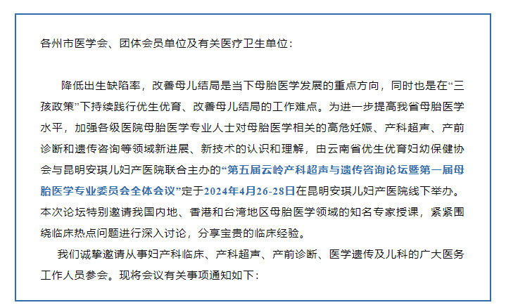 正在报名|第五届云岭产科超声与遗传咨询论坛暨第一届母胎医学专业委员会全体会议